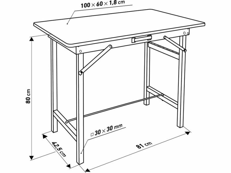 100x60cm, výška 80cm, hrúbka dosky 18mm, max. nosnosť 100kg, hmotnosť 13kg