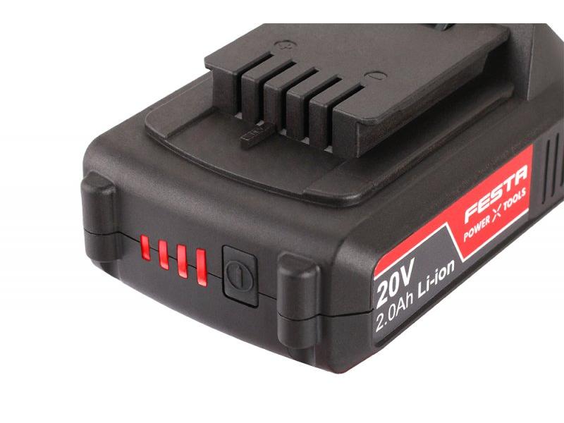 Li-ion technológia použitá v batériách FESTA Power x tools ponúka možnosť dobíjať batérie kedykoľvek - bez znižovania ich kapacity, u Li-ion batérií taktiež dochádza k len veľmi pomalému samovybíjaniu