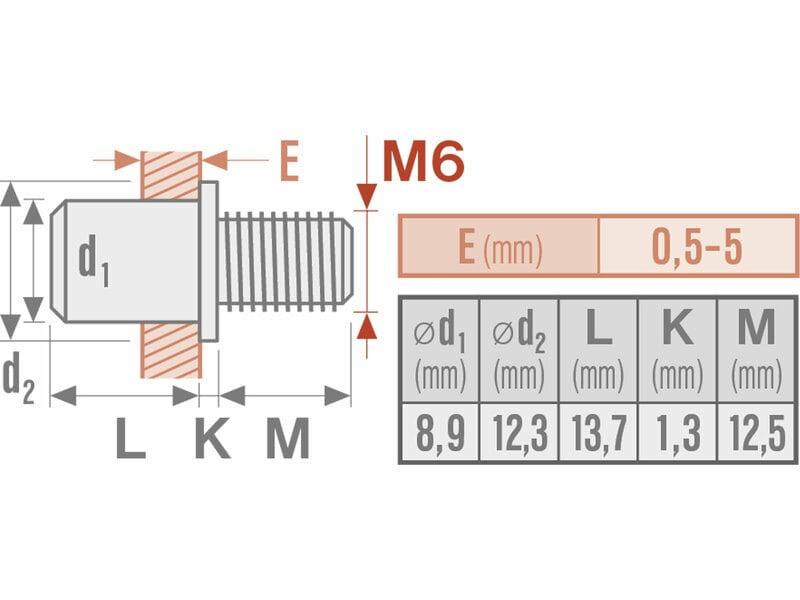 FORTUM SKRUTKY NITOVACIE POZINKOVANÉ, M6X12MM, 50KS, 4770676