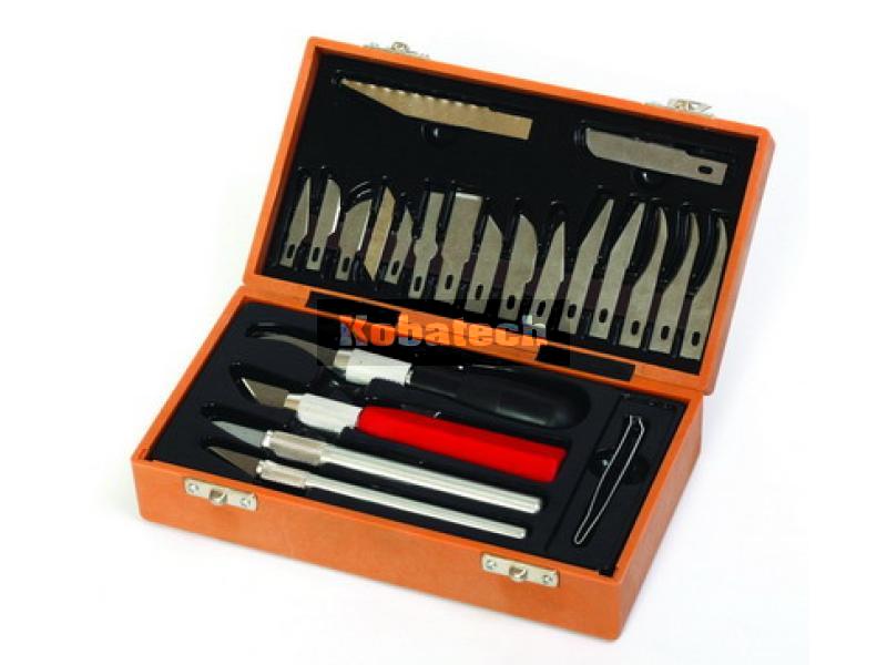 Multifunkčná sada skalpelových nožov, ergonomické rukoväte s rýchloupínacím úchytom. Široké možnosti využitia v modelárstvo, rezbárstvo.