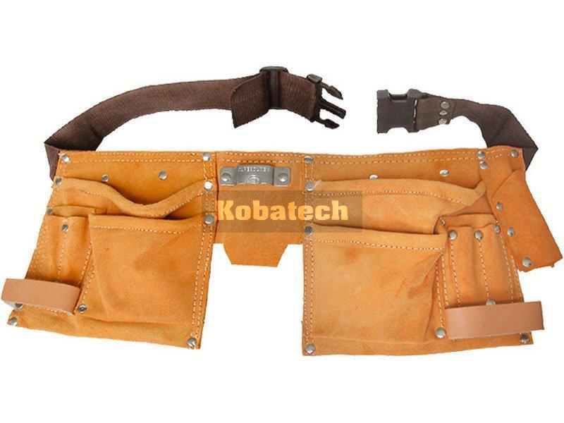 VRECKO NA NÁRADIE KOŽENÉ, 12 VRECIEK, S OPASKOM, PLASTOVÁ SPONA, DVOJDIELNE, 417