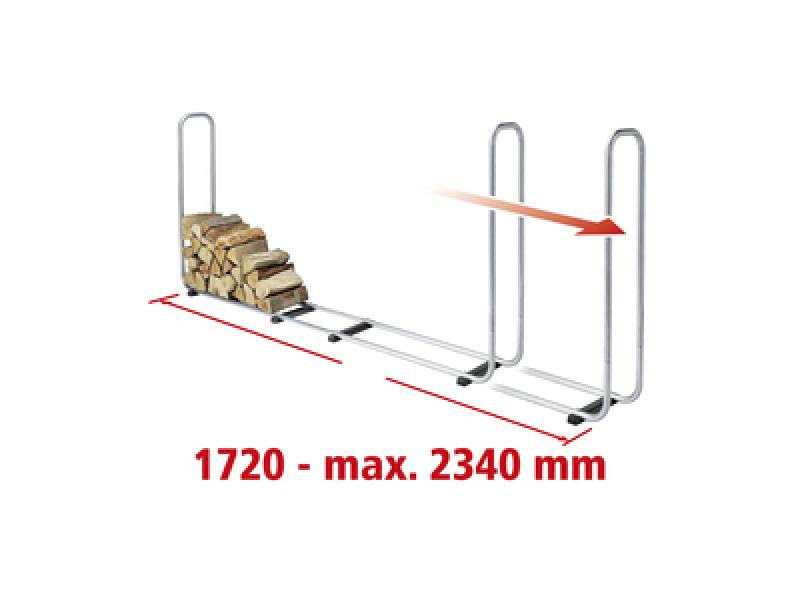 Drevené polená s dĺžkou 25–50 cm môžete úhľadne, priestorovo úsporne a s optimálnym odvetraním uskladniť s praktickou pomôckou na stohovanie palivového dreva. Vďaka funkcii roztiahnutia prispôsobíte dĺžku pomôcky na skladovanie palivového dreva od 1,72 m až do 2,34 m svojim individuálnym priestorovým podmienkam. Rám v robustnom kovovom vyhotovení je ideálne vhodný do exteriéru. Montáž je rýchla a jednoduchá: prvky spojte dokopy, pevne utiahnite pomocou kľúča na skrutky a hotovo. Po montáži môžete pomôcku na stohovanie jednoducho posúvať a premiestniť do želanej polohy. Ideálnym miestom je suchý, chránený priestor pri stene, múre alebo plote. Vďaka maximálnej stohovacej výške 1,00 m v ňom môžete uskladniť až 1,17 m³ dreva. Integrované plastové podložky odolné proti poveternostným vplyvom sa pritom postarajú o optimálne vetranie dreva zdola.